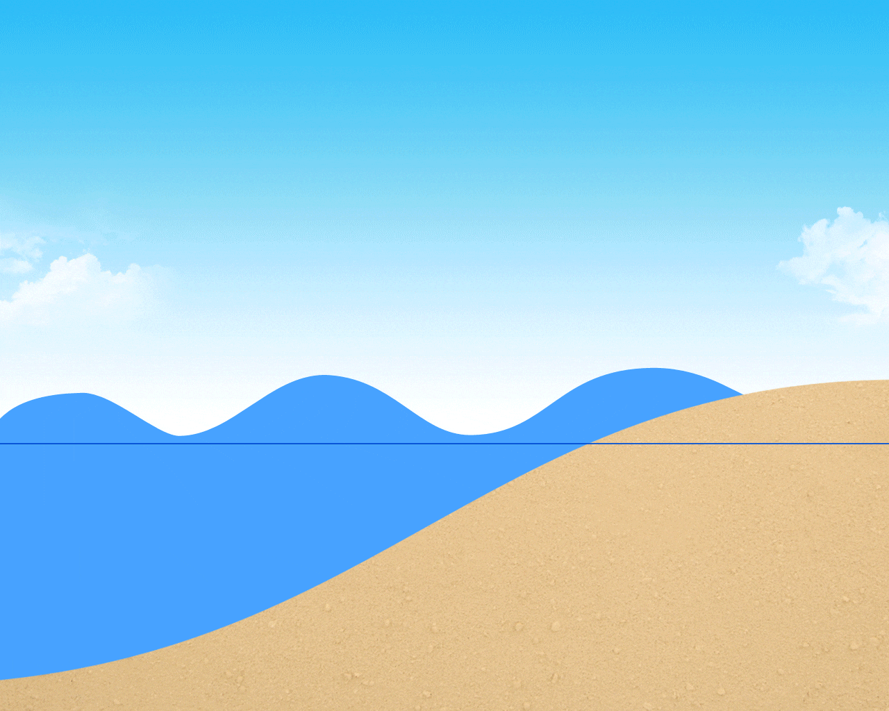 Le système de drainage Ecoplage® repose donc sur le principe d’infiltration de l’eau dans un milieu poreux (le sable), non saturé en eau. Cette méthode crée un écoulement de l’eau de mer de la surface de la plage en direction du drain entraînant ainsi un rabattement de la nappe phréatique.